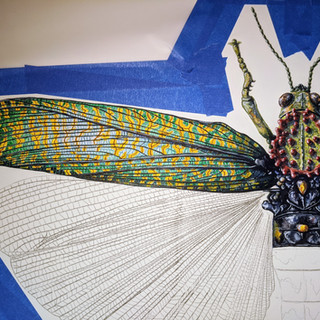 I had a bit of a breakdown the other day. I was working on the second of my 'Giant Bug' series. This is a series I started with the Purple Winged grasshopper. It was probably the most fun I'd had painting since moving to Australia.
